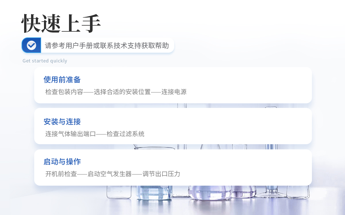 | 1、双稳压装置,确保高精度稳压条件下气体流量的稳定性。 | 2、电磁阀自动转换,彻底杜绝了电磁阀在自动放水时产生的连续噪音,实现放水、转换一体化。 | 3、仪器内部采用硅橡胶圈,含硫量低有效提高气体质量,保证色谱基线稳定。 | 4、体积小,双支FV型亚克力过滤器,耐压高,不会因工作环境及腐蚀气体的影响,导致过滤管变形,开裂而产生漏气现象,可持久使用,一劳永逸。 |