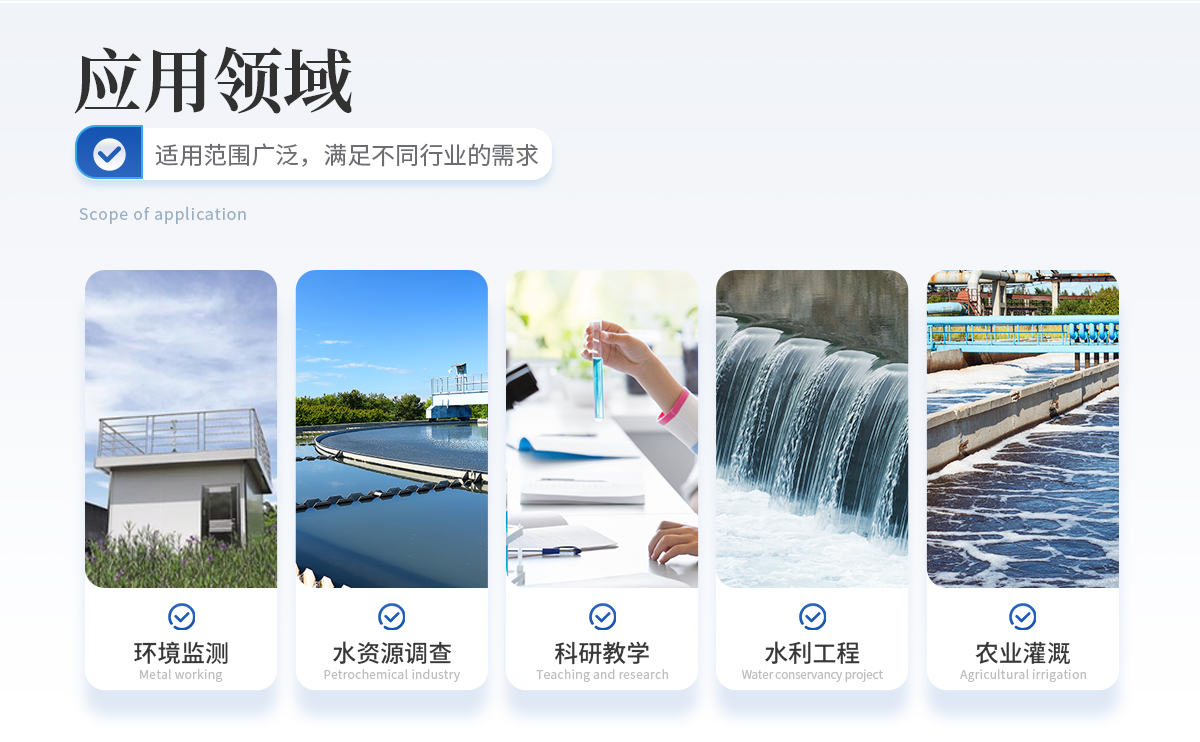 水利工程部门:监测河流、渠道、水库的水流速度与流量; 环保部门、水质监测站以及相关环保企业:使用此类设备来监控城市排水系统、工业废水排放的流速和流量; 第三方检测机构:现场校准比对在线明渠流量计仪表设备; 应急管理部门:快速评估水流状况,为防洪减灾提供数据支持。