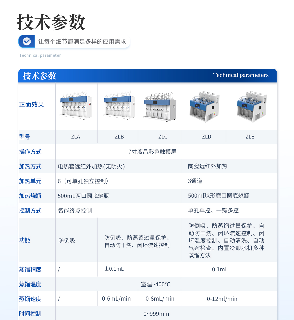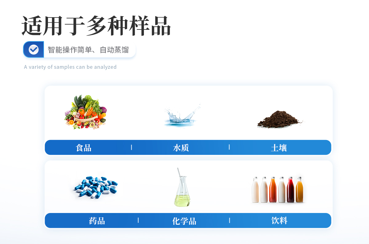 智能一体化蒸馏仪采用智能模块化设计:方法自定义设置保存/读取、开机自动调取使用,冷凝单元特殊定制蛇形冷凝管、智能终点控制防过量蒸馏、防倒吸保护,防干烧保护、实现了智能操作简单、自动蒸馏、美观实用、节能降耗、节省人工的同时为用户做样提**率节约人员成本开销。