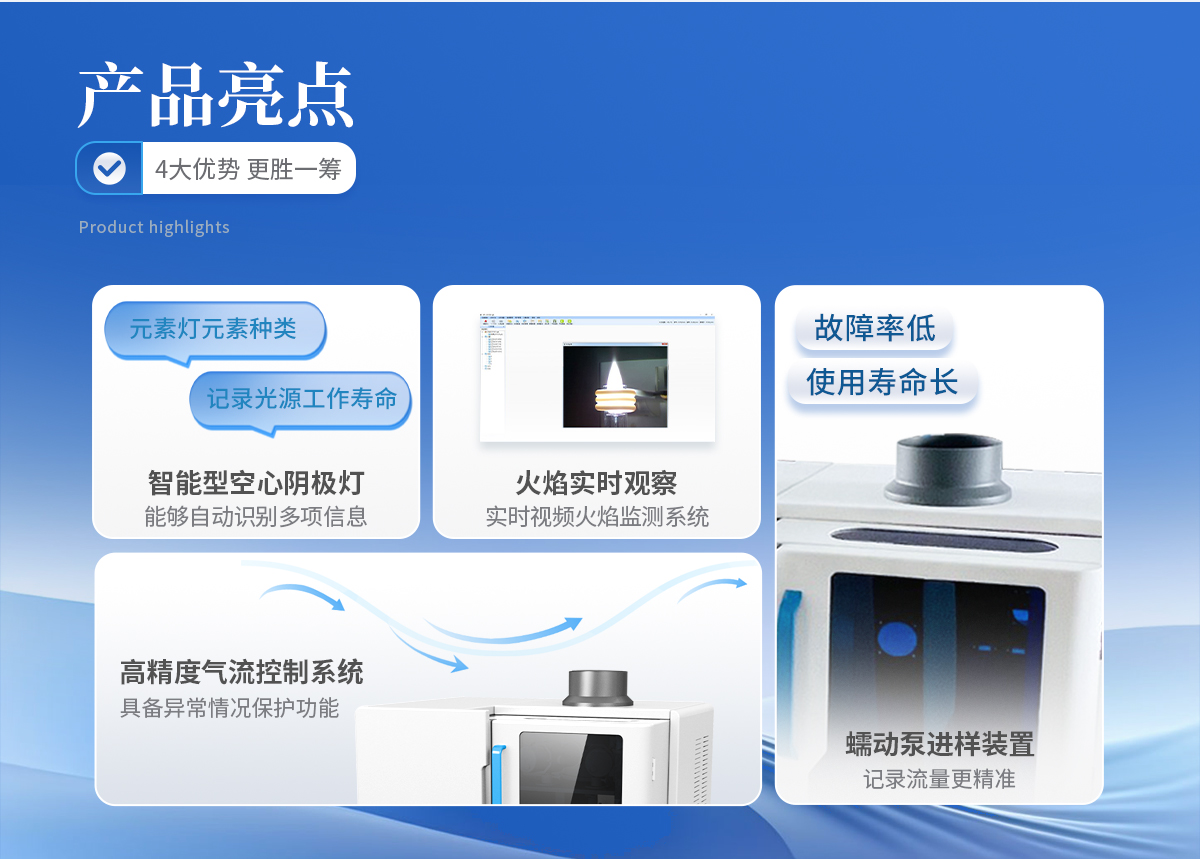 标准曲线的制作只需一个**浓度点的标准溶液,仪器可进行高浓度样品自动稀释、自动清洗管路等功能,极大地节省了标准样品制备时间和使用成本。 5、火焰实时观察