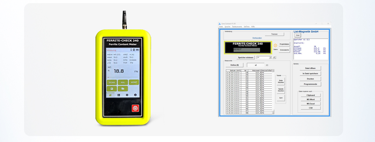 仪器可以与Windows PC进行通信,使用Lima Connect应用程序,测量结果可以进行统计评估并以图形方式显示,应用程序是免费的。